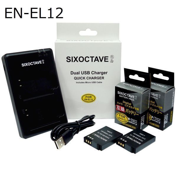 > EN-EL12 Nikon ニコン 互換バッテリー 2個と 互換デュアルUSB充電器 の3点セット Coolpix S710 S8200 S9400 P340 KeyMission 360