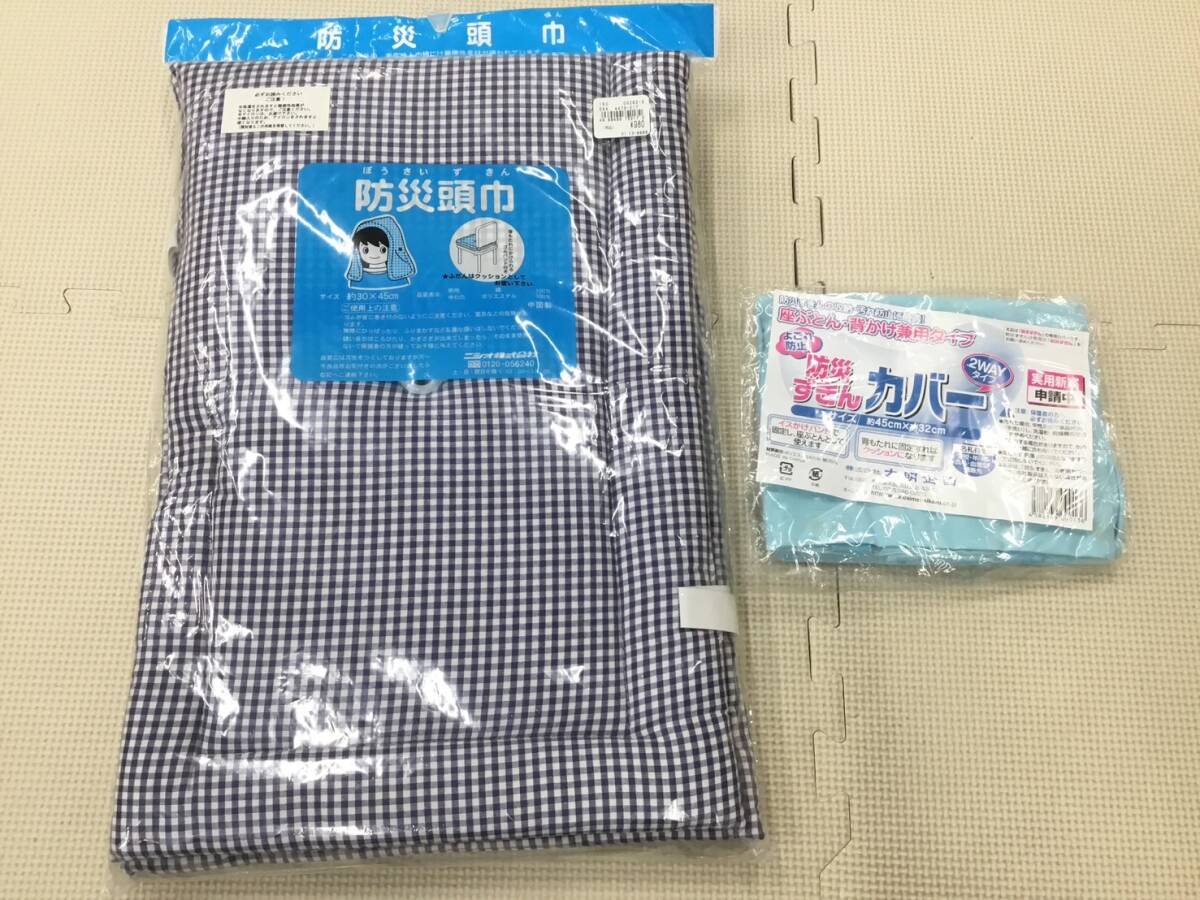 > S1133 新品【防災頭巾&カバー】スクール用品 /頭巾 紺x白ギンガムチェック カバー 水色 2枚/防災/頭巾/地震/震災/災害/小学生/男女兼用