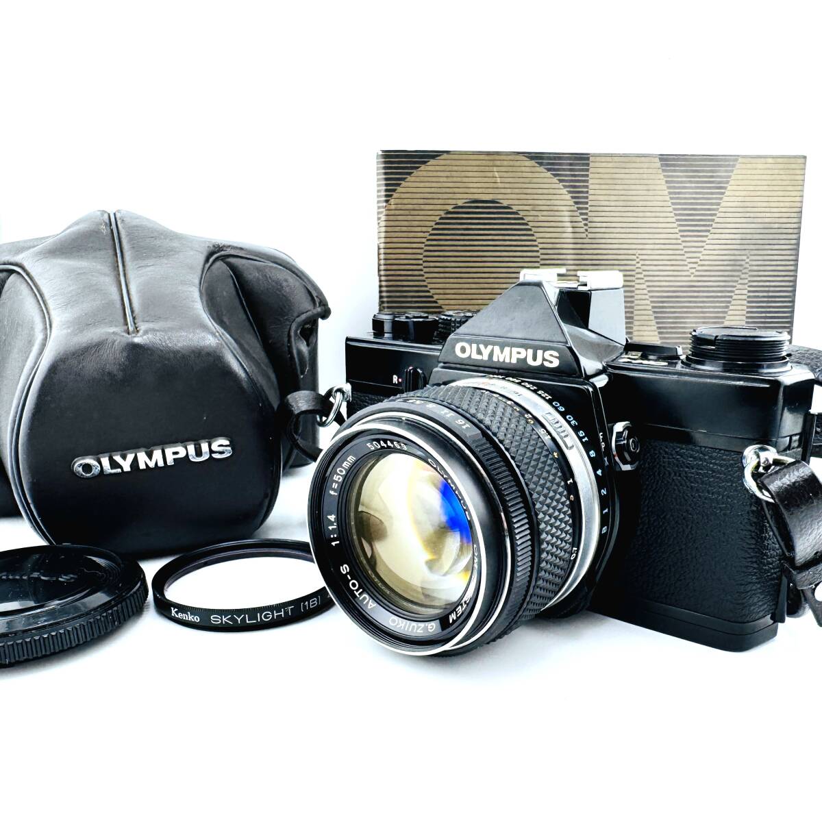 > ★実用品★ OLYMPUS OM-1 + G.ZUIKO AUTO-S 50mm F1.4 カメラケース ストラップ 取扱説明書 レンズフィルター ボディキャップつき Y0088