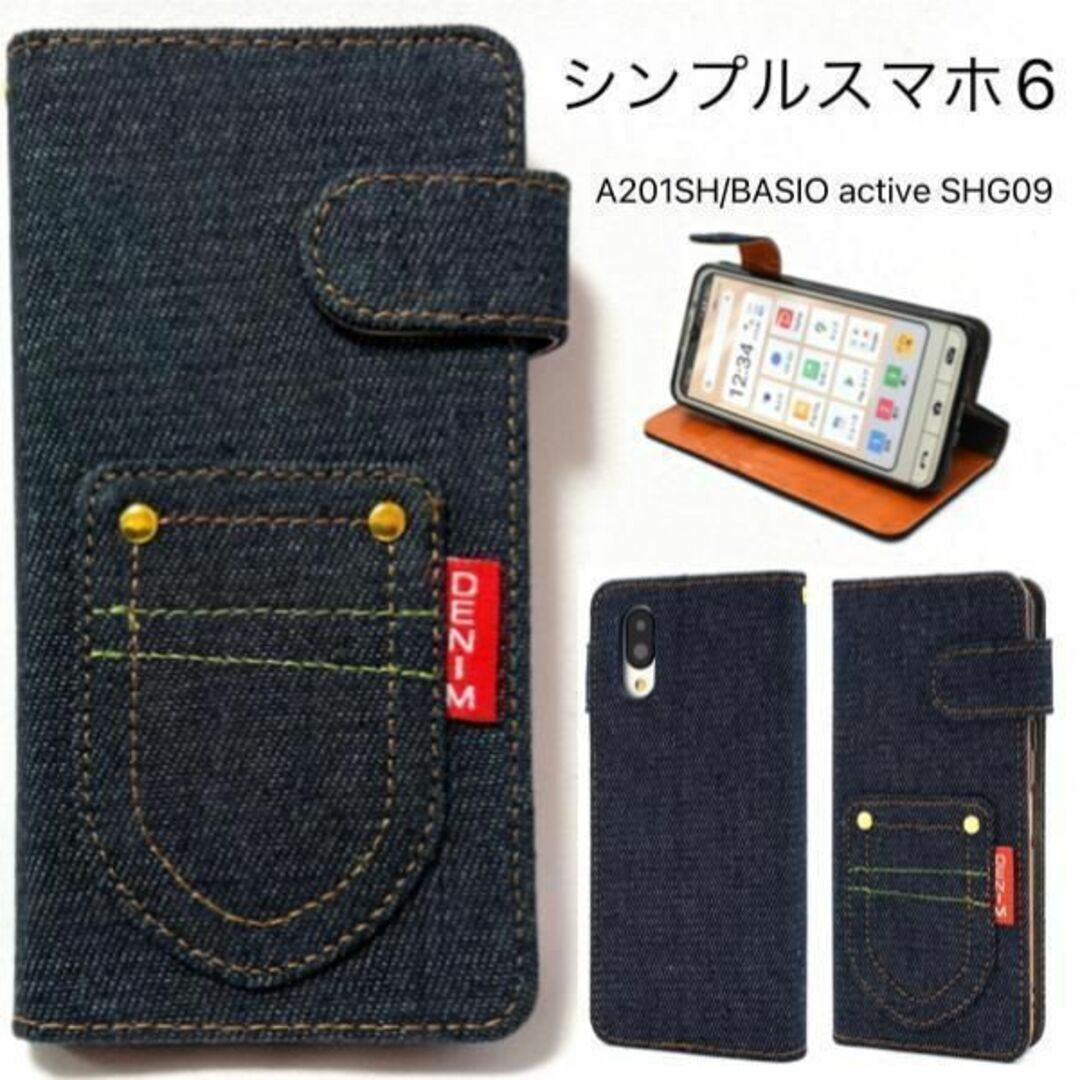 > シンプルスマホ6 A201SH/BASIO SHG09 デニム手帳型ケース/スマホケース