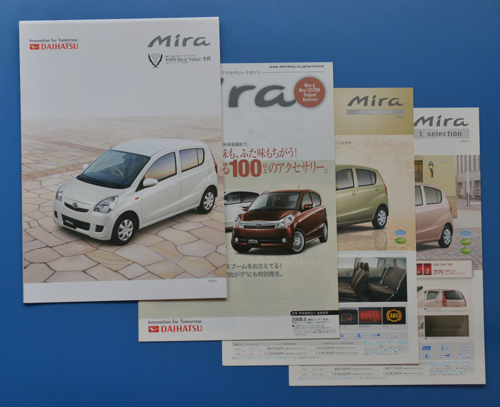 - 【DA02-36】ダイハツ ミラ L275S DAIHATSU MIRA 2008年5月 アクセサリー・特別仕様車カタログ付 カタログ4冊