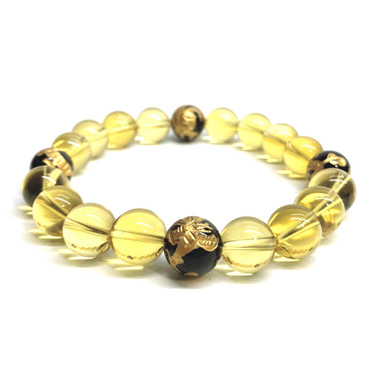 - 10mm 四神獣金彫オニキス×シトリン パワーストーン ブレスレット天然石 運気上昇 開運 金運 恋愛運 青龍 白虎 玄武 朱雀 ☆