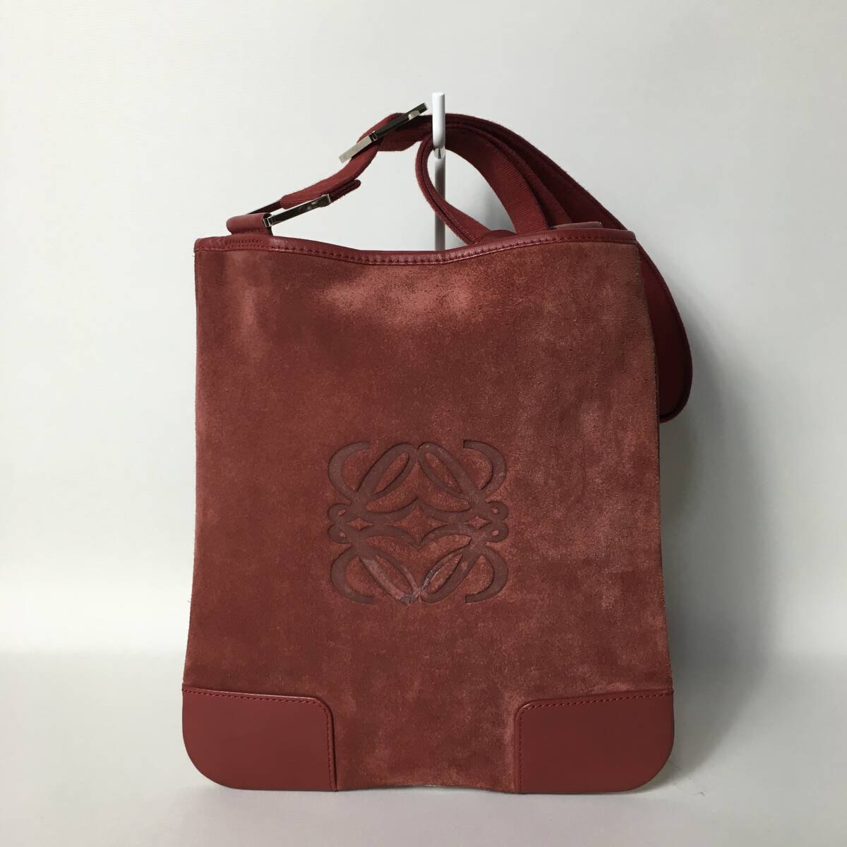 > 74B127|ロエベ ショルダーバッグ レザー スエード レッド アナグラム