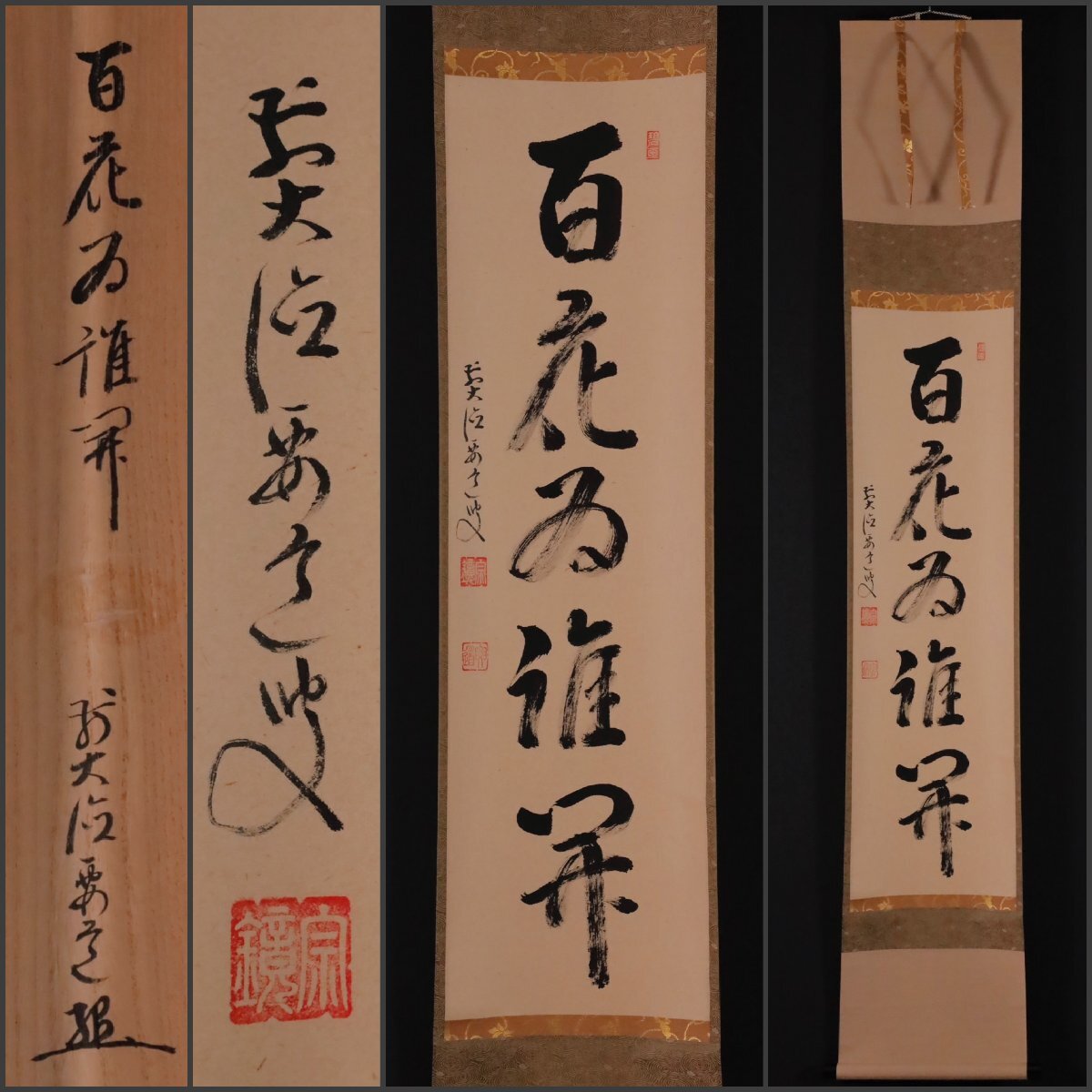 > 【模写】吉】12473 雪尾要道 書「百花為誰開」 共箱 臨済宗 大徳寺派 天龍寺 仏教 茶掛け 茶道具 禅語 掛軸 掛け軸 骨董品