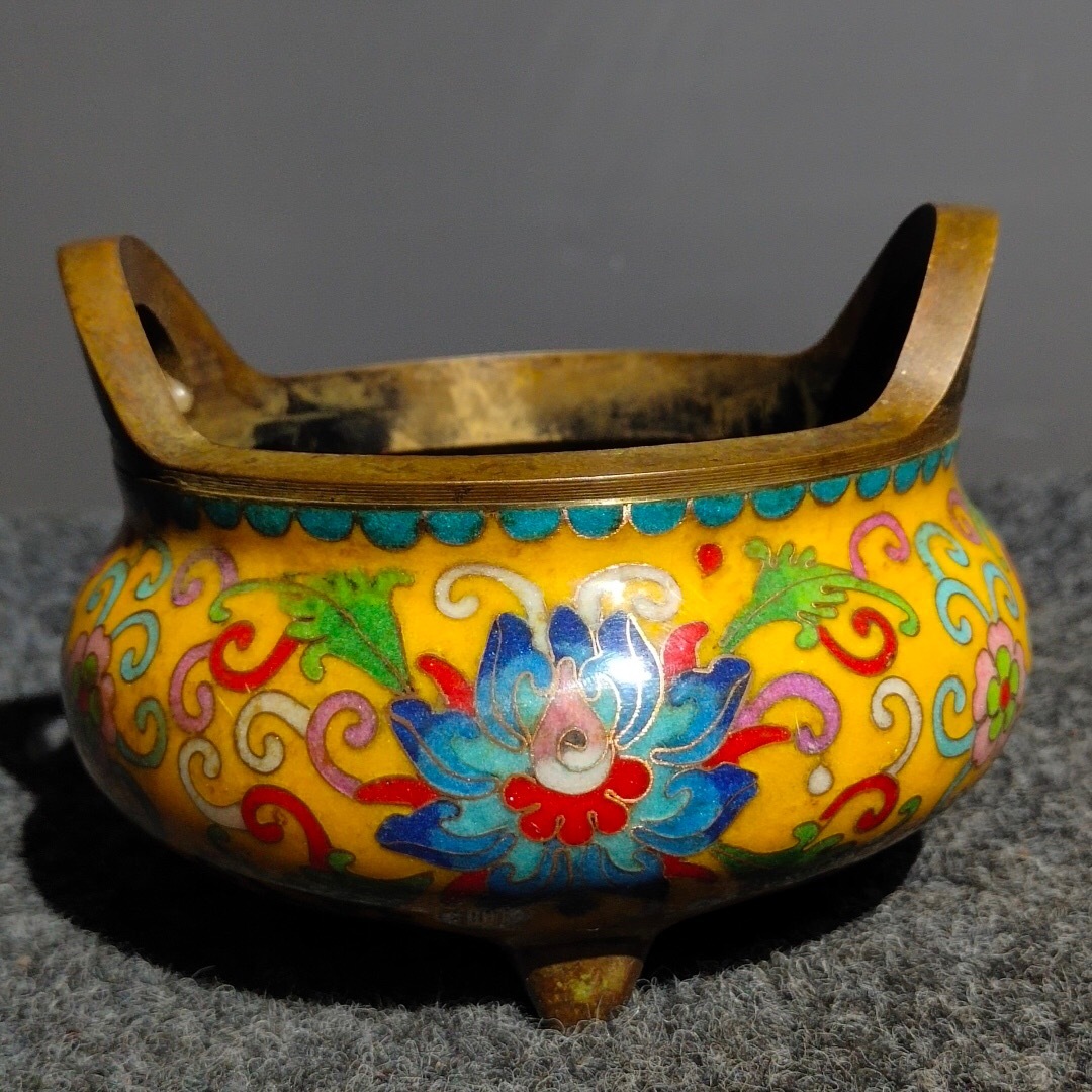 - 蔵友旧蔵出 銅製 景泰藍 琺瑯彩 纏枝花卉紋 雙富貴橋耳熏香爐 貴重品 置物 古賞物 密宗密教 供養品 仏教美術品