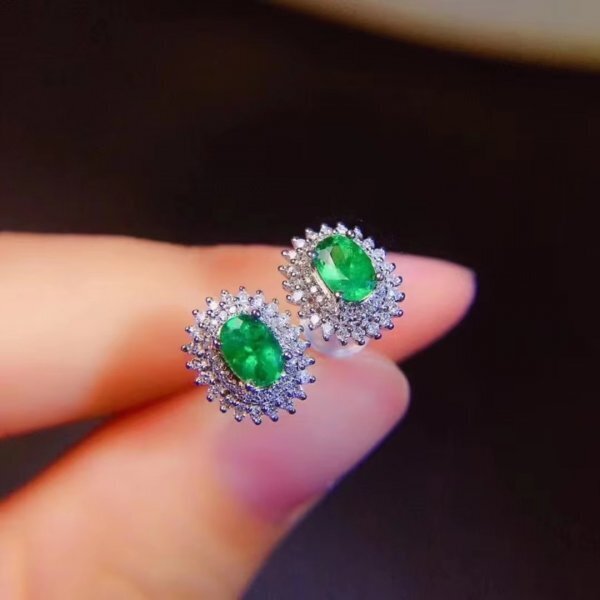 - 《最初の入札者様は開始価格で購入可能》新品、女性のための天然エメラルドピアス、925スターリングシルバー、証明書 aa