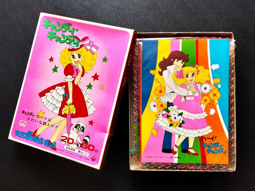 - '70s 当時物 キャンディキャンディ カード 未使用 60入り 豪華 当り付きセット !! ☆ 大判イラストカード入り手提げ パスケース アルバム