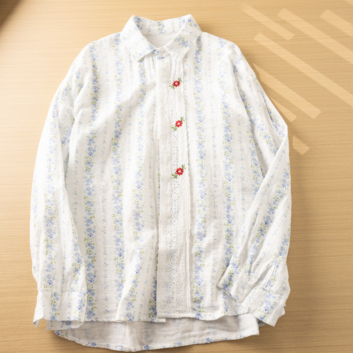 - 新入荷ダブルガーゼ6 プリント柄 オシャレ ワイシャツ トップス チュニック 大人可愛 フリーサイズ ナチュラル 綿100% コットン