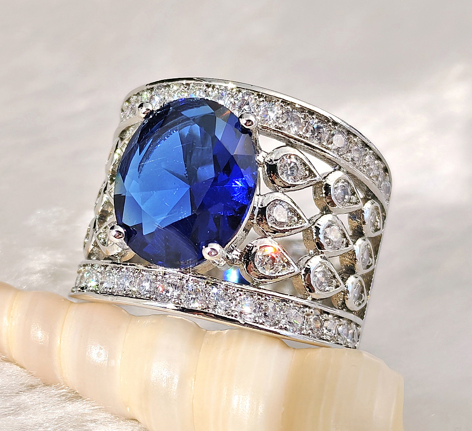 - N250474◆Bigstone◆【深邃の藍】華麗な輝き*ファッション感覚*大存在感のリング*12/14/16/18号 選び可