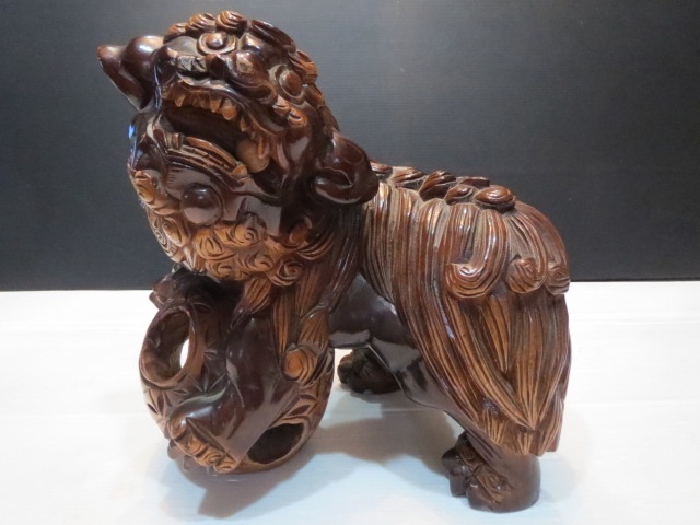 - 当時物 木製木彫 置き物 玉乗り唐獅子 魔除け 縁起物