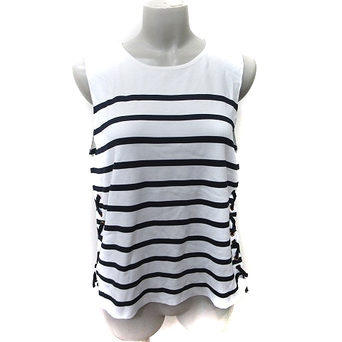 > ザラ ZARA KNIT カットソー ボーダー ノースリーブ 白 ホワイト 黒 ブラック /YI レディース