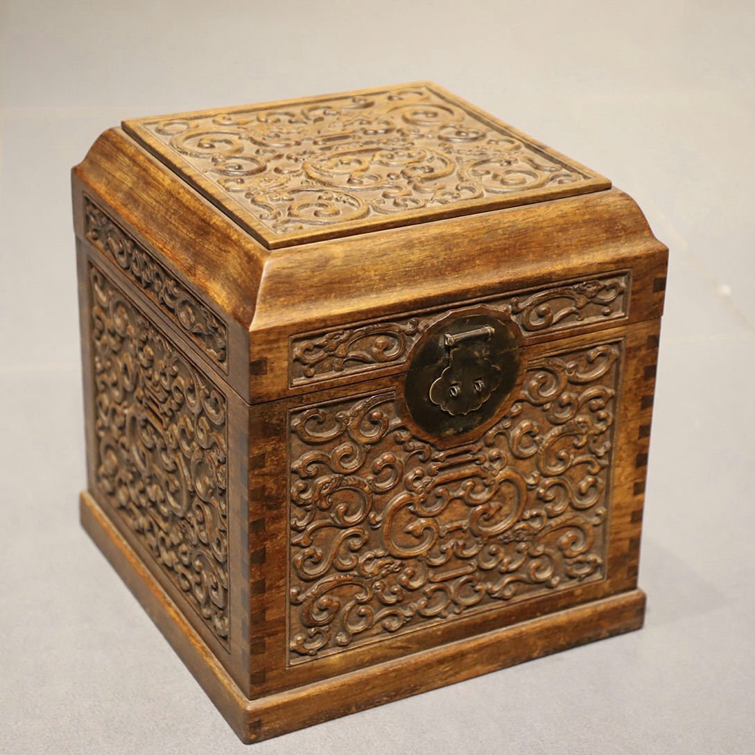 - ■観心・時代旧蔵■C0489清時代 黄花梨 滿彫工大印箱 黄花梨木細密彫 細密細工★古置物★古賞物★古擺件★蒐集家放出★唐物