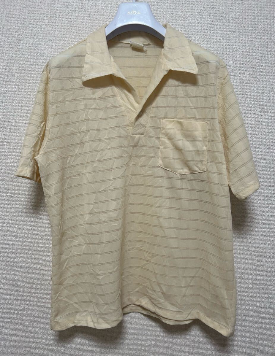 > 70's オープンカラーシャツ 半袖シャツ プルオーバー シャツ シアーシャツ XL USA Vintage ヴィンテージ ポリシャツ ベージュ系