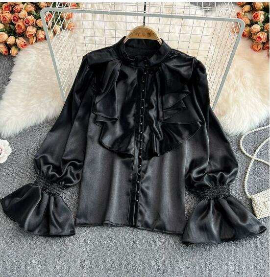 - M1211 シャツブラウスレディース● きれいめ sexy 20代30代40代 ●着心地抜群 長袖 素敵 black