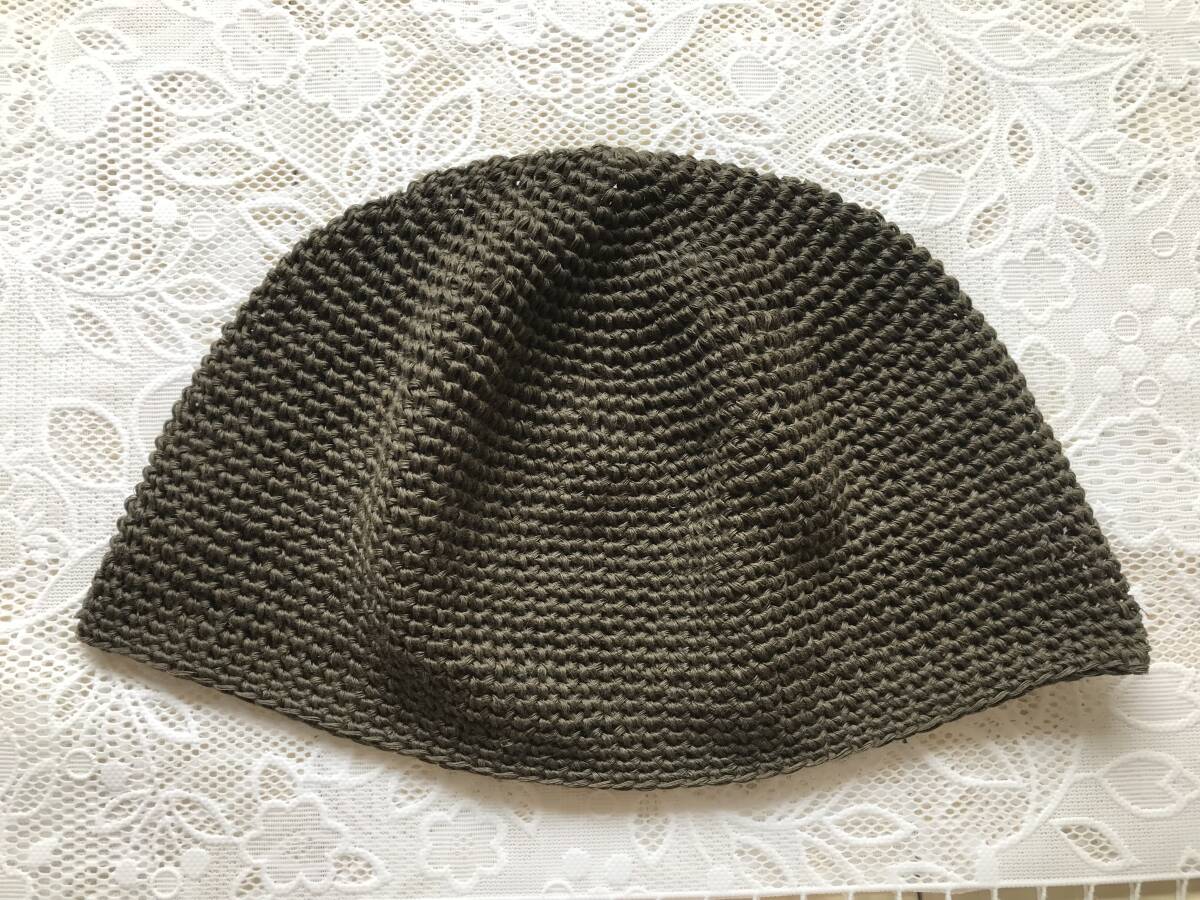 - 即決★ハンドメイド 手編み 通気性よい/リネン麻100%/少し大きめ 高さ16cm/オリーブ色/帽子/ビーニー ニット イスラム帽/アウトドア