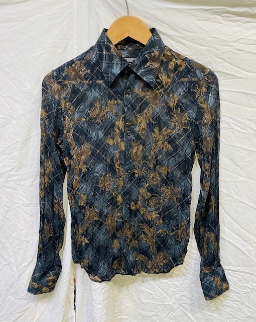 > TORNADO MART トルネードマート 長袖 シースルー ドレス シャツ 総柄 Mサイズ Y2K 00’s