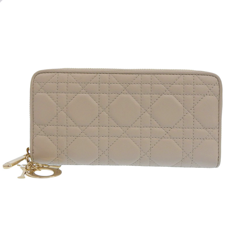 - ディオール レディディオール ヴォヤージュ 長財布 ラウンドファスナー カナージュ レザー ベージュ S00070NMJ 中古 新入荷 OBB0610