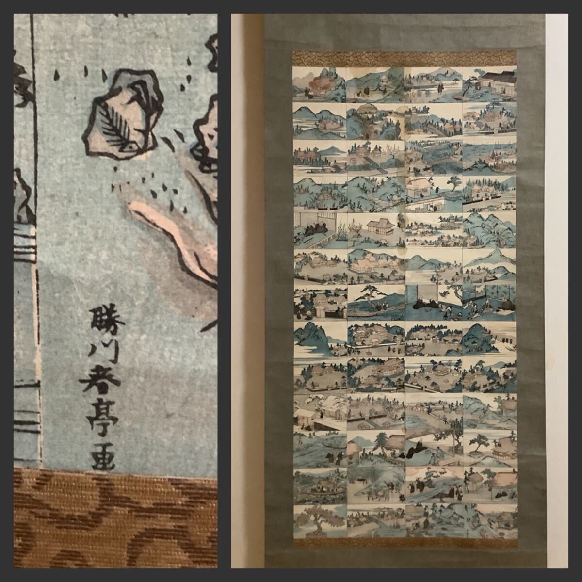 > 【模写】掛軸Jun718L[勝川春亭 親鸞聖人御絵伝]彩色紙本版摺 木版画/仏画 仏教美術 浄土真宗開祖 古書 浮世絵師 名号