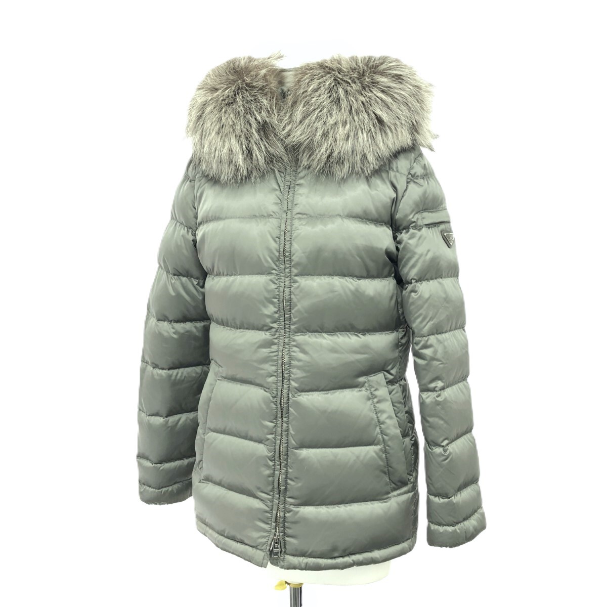 - ◆PRADA プラダ 三角プレート フォックスファー付き ダウンジャケット サイズ:40◆ カーキ レディース アウター 28G060 2017製