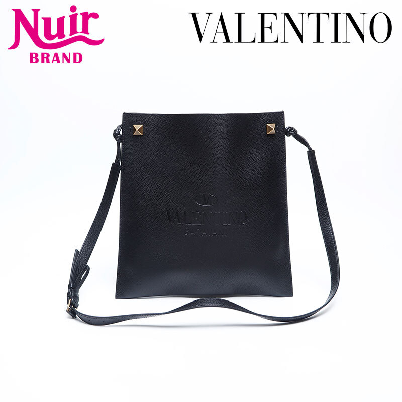 - ヴァレンティノ VALENTINO ショルダーバッグ ロゴ 型押し レザー ブラック