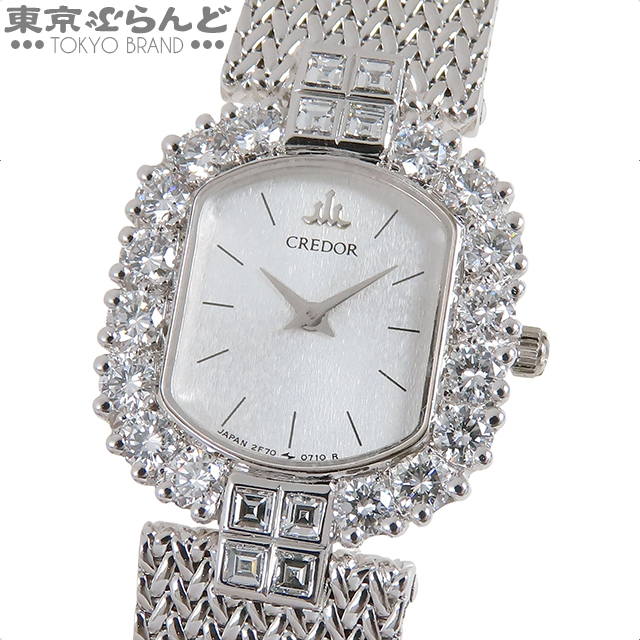 - 101794446 セイコー SEIKO クレドール ダイヤモンドベゼル シルバー K18WG 金無垢 保証書付 腕時計 レディース クォーツ 電池交換済 仕上済
