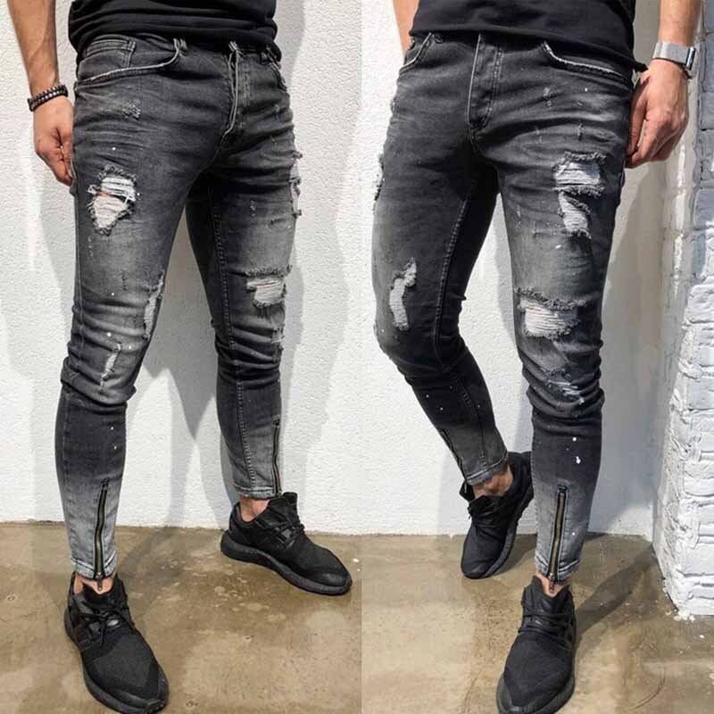 - 人気品カジュアル メンズジーンズ ジーパン スキニーパンツ デニムパンツ ウォッシュ ストレッチ バイクジーンズ ダメージ S-4XL