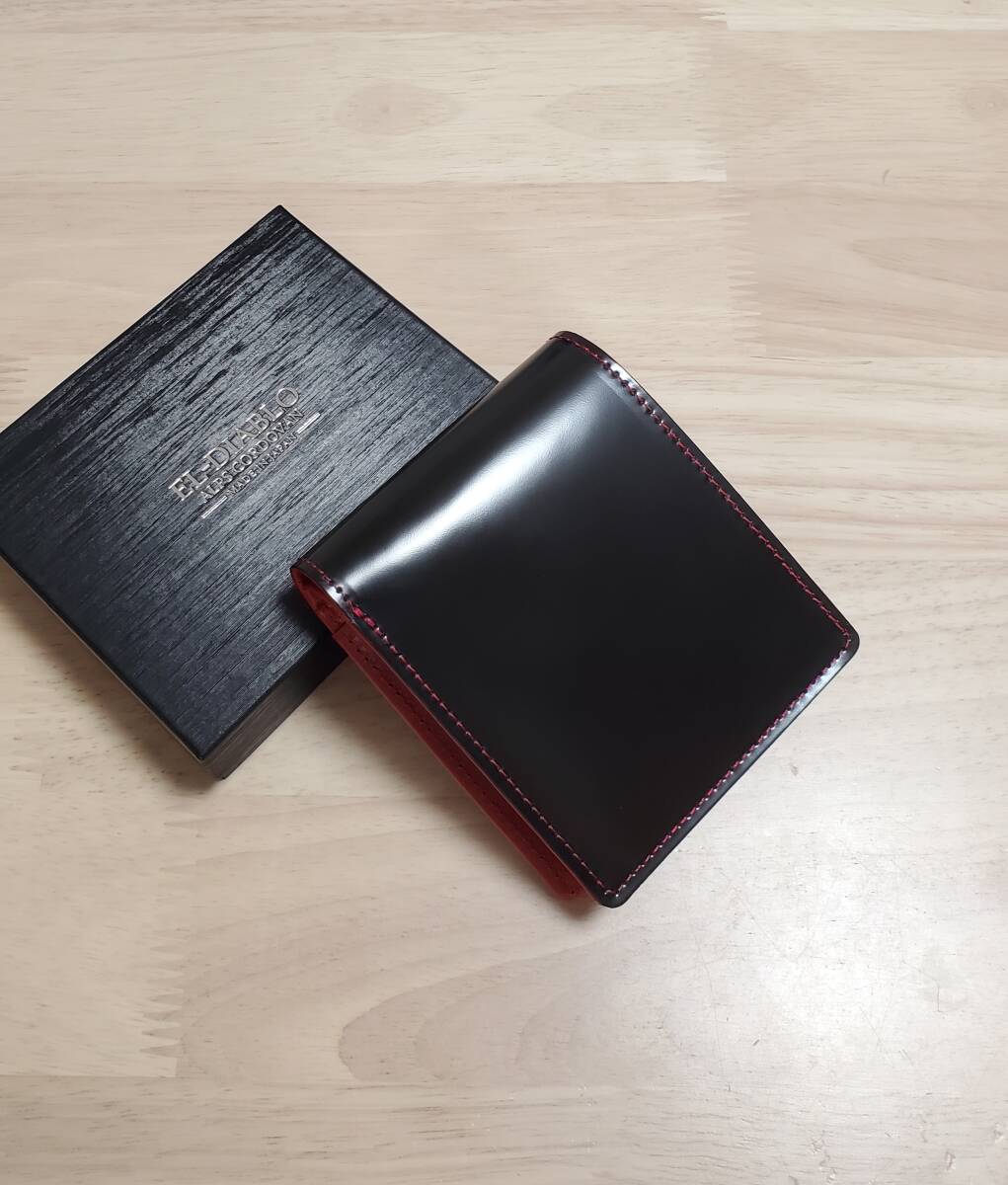 > 新品 未使用 美品 EL-DIABLO 二つ折り財布 折り財布 メンズ 短財布 折財布 本革 革 コードバン 栃木レザー 牛革 日本製 ブラック レッド