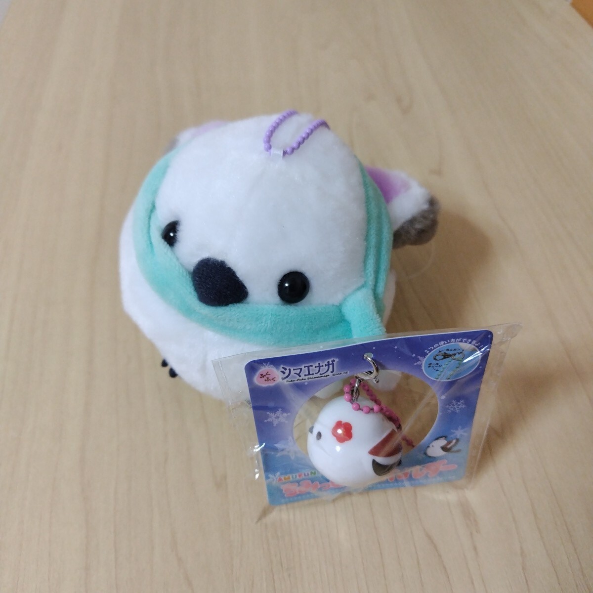 > ふくふくシマエナガ マスコットぬいぐるみ(パープルシマちゃん)キーホルダー(しまゑ)2点セット ★非売品・新品・未使用★ シマエナガ