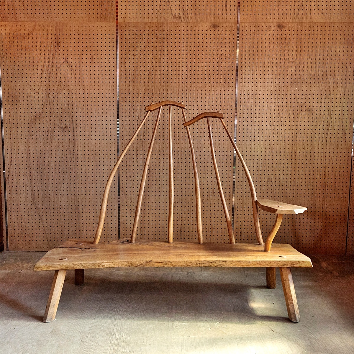 - 【福岡】希少☆ジョージナカシマ風 カシ材一枚板 ベンチ 板座チェア 2人用 アームチェア ナチュラル【MR0327-2】