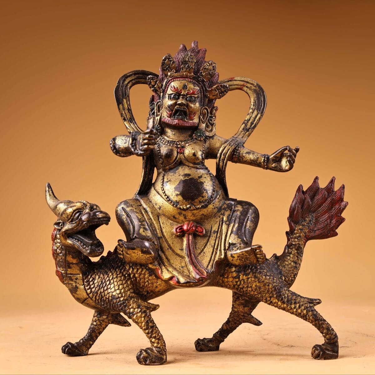 - 蔵友旧蔵出 銅製 泥金 藏傳龍王財神像 貴重品 置物 古賞物 密宗密教 供養品 仏教美術品
