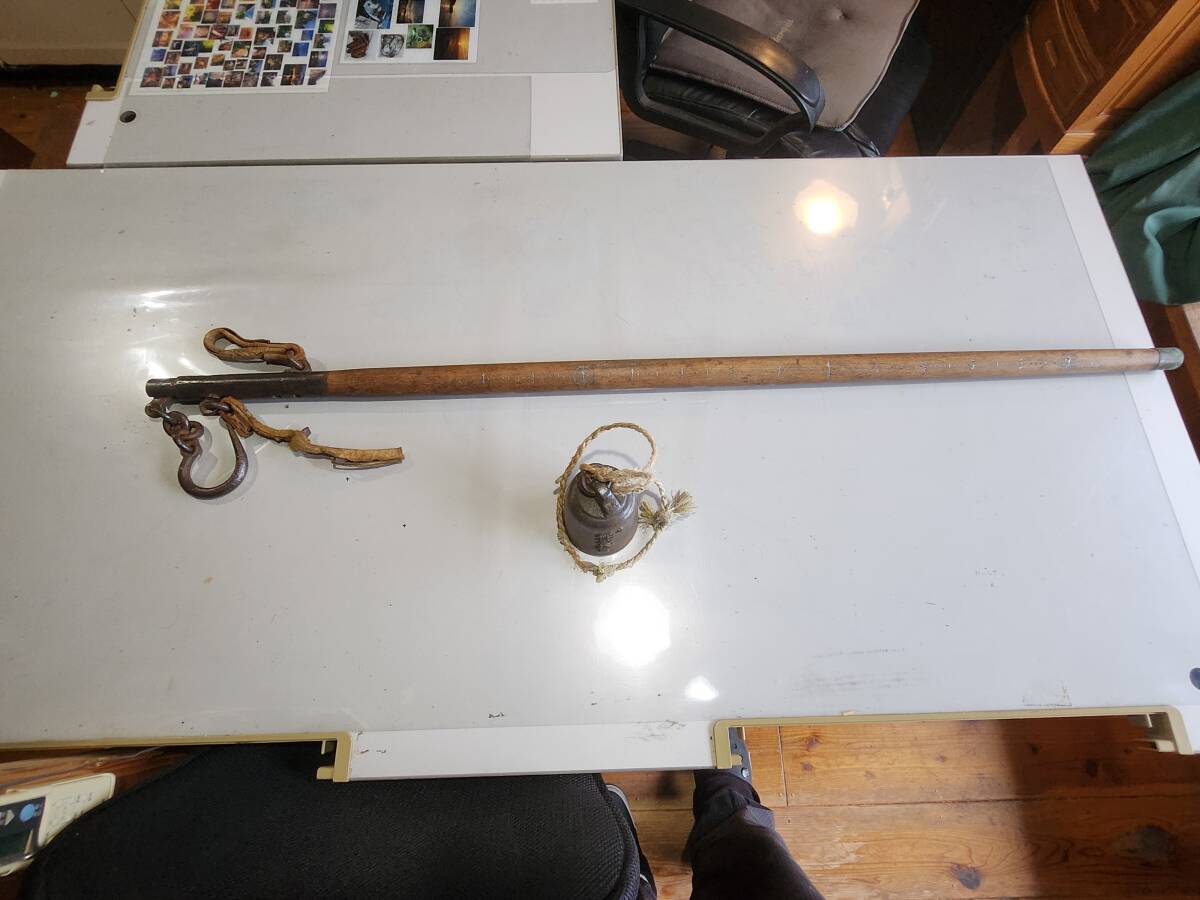 - 秤棒 年代物 重り付き アンティーク 文明の利器