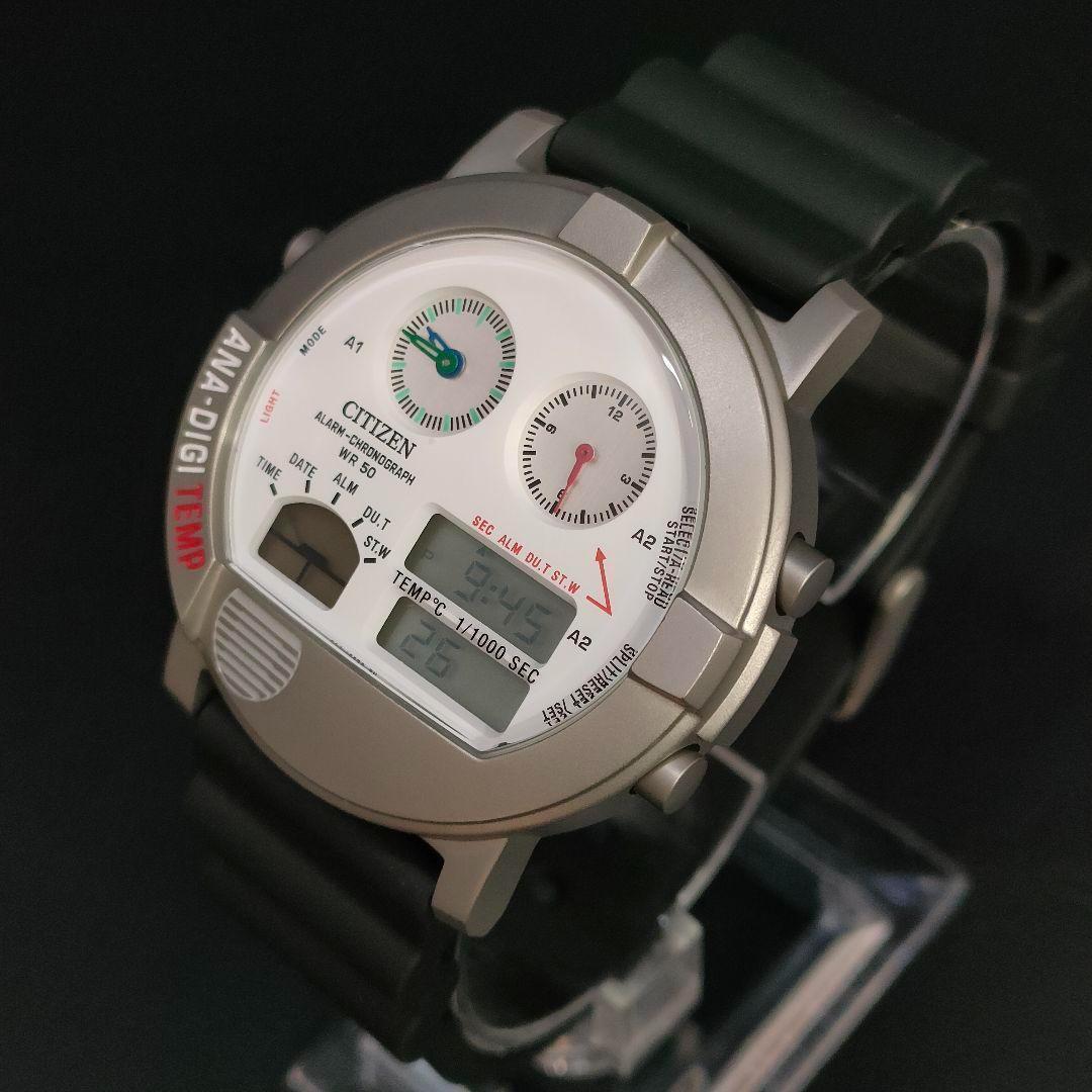 - 極美品 CITIZEN シチズン アナデジテンプ ホワイト クォーツ QZ 時計