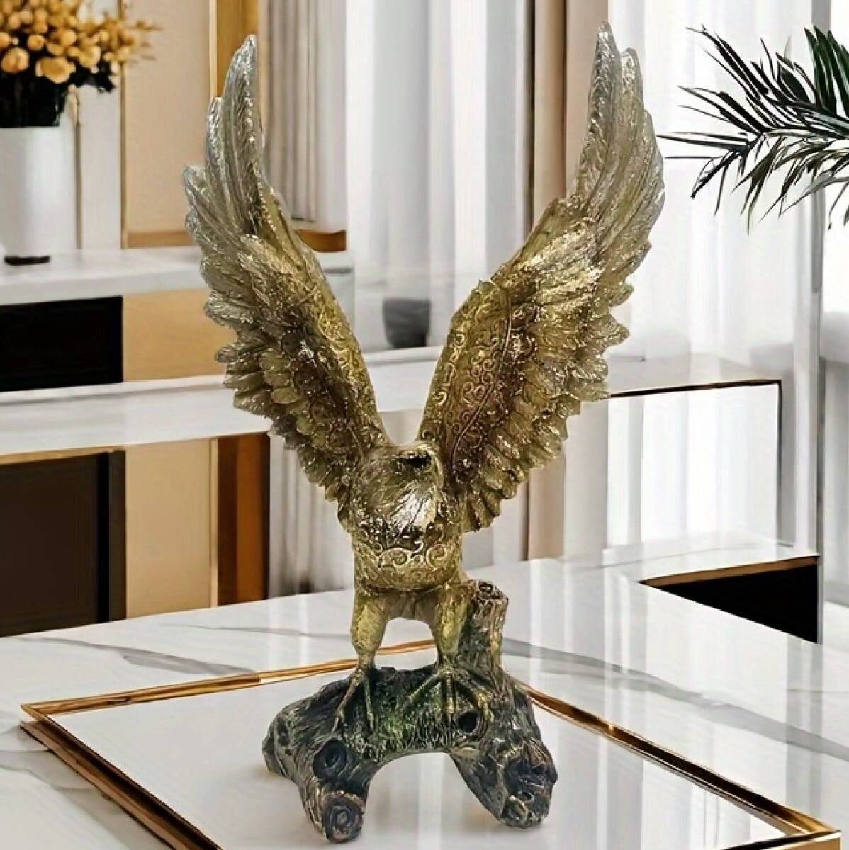 - ミニチュア 羽を広げたワシ ゴールド 金色 リアル 置物 23.5cm 鳥 鷲 樹脂像 インテリア 動物 レジン おしゃれ アニマル フィギュア t6853