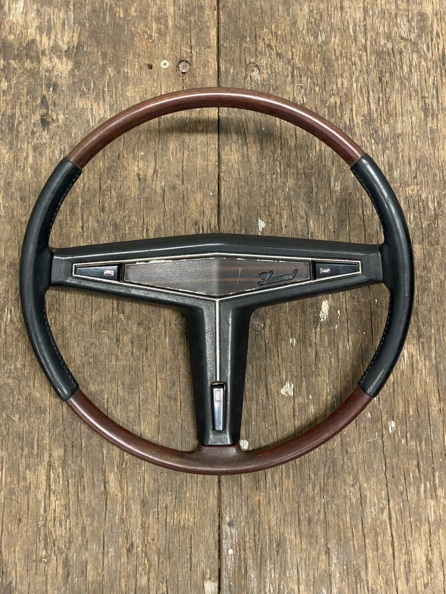 > 日産 ニッサン NISSAN ローレル LAUREL ハンドル ステアリング C130 ブタケツ ガメラ 希少 純正 ノーマル 当時物 ウッド 旧車 国産車 昭和