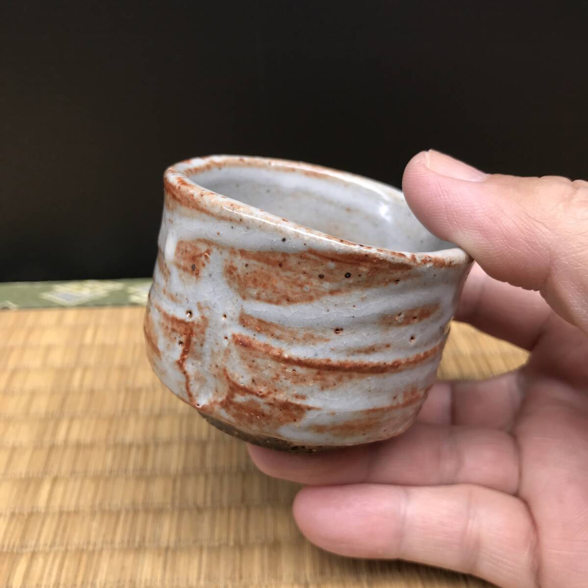 - ねずみ志野のぐい呑み(ロ)魯山人銘印?酒器 猪口 小鉢 盃 杯 珍味入れ(R70602_A)