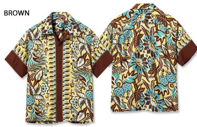 - レーヨンアロハシャツ「FLOWER FIELD BORDER」◆SUN SURF ブラウン Mサイズ SS39430 サンサーフ ハワイアン 日本製 東洋エンタープラ