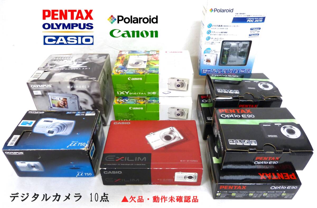 > コンパクトデジタルカメラ 10点 まとめて Φ PENTAX ペンタックス optio E90 他/OLYMPUS/Polaroid/CASIO/Canon ◎元箱-付属 ▲欠品-未確認