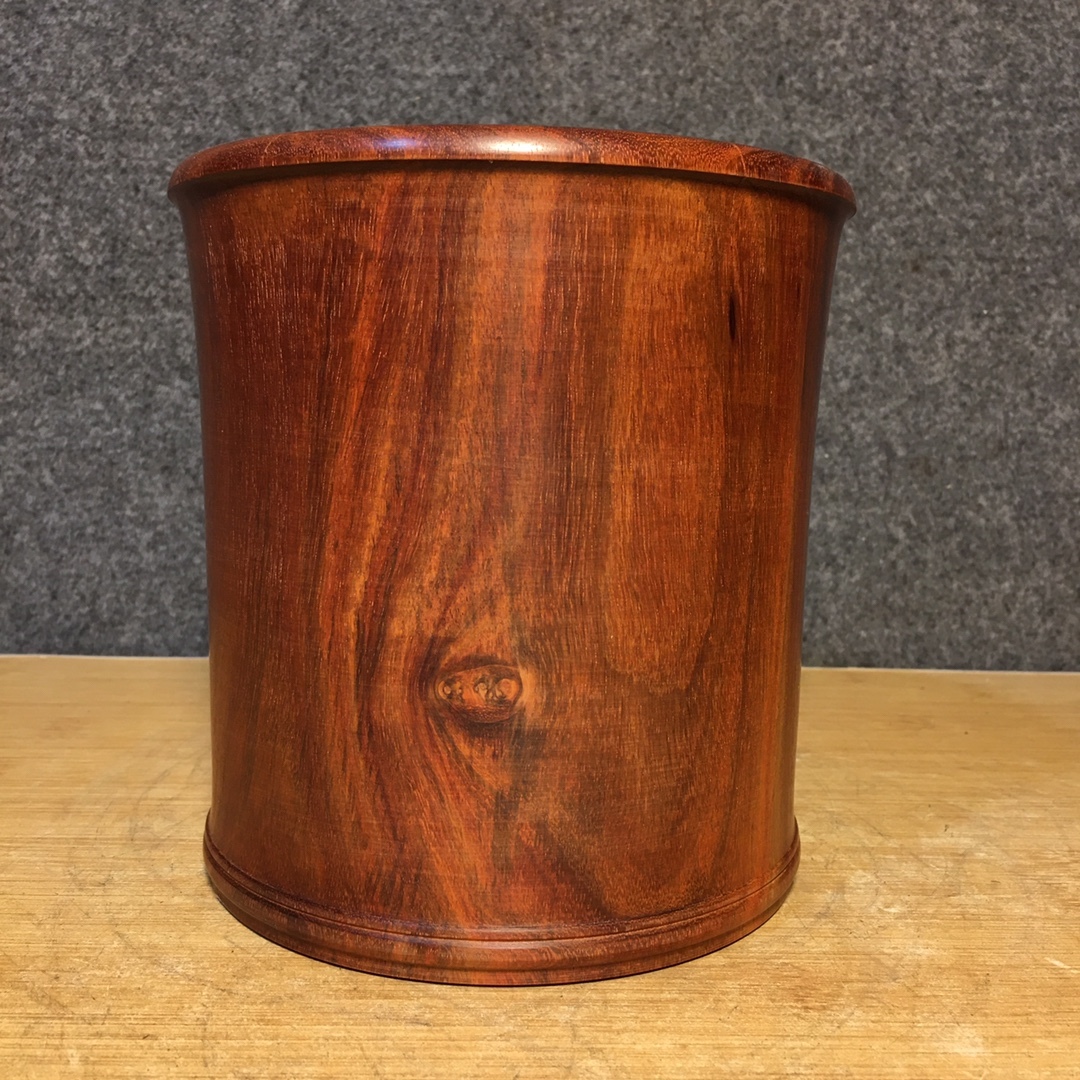 - 古木彫り 秘藏 清代 旧蔵大葉黄花梨筆立て、 書道具 文房具 時代物 中国古美術 細密彫 置物 賞物 唐物 木彫り 文玩 6.5