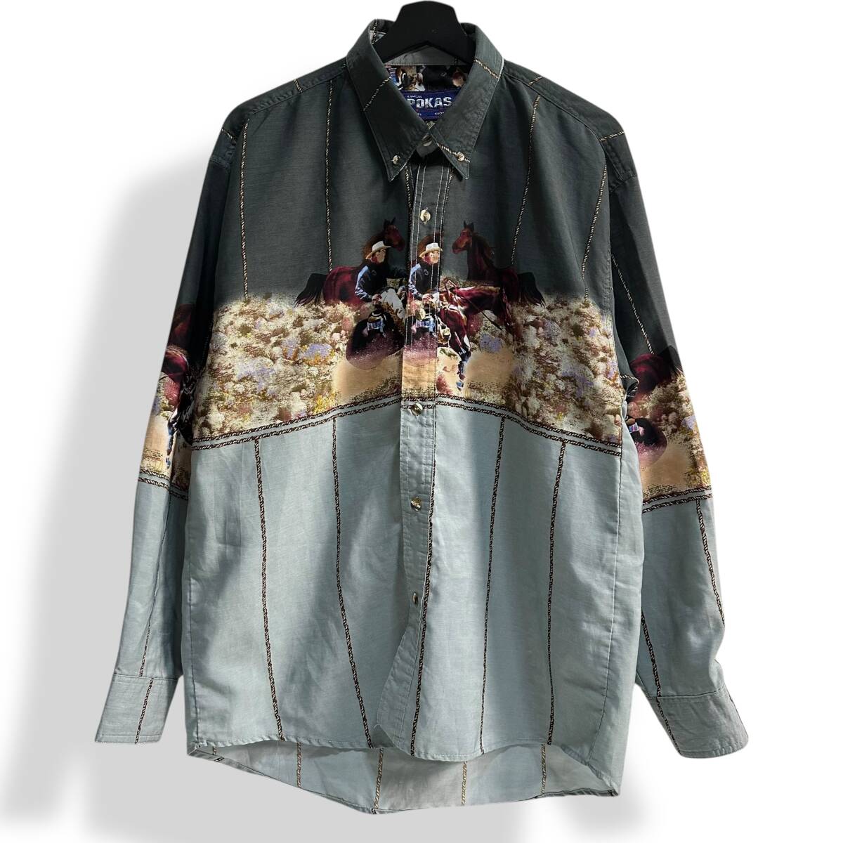 > お洒落 希少【POKAS】VINTAGE 80s~ 総柄 ビンテージプリントシャツ 絵画 レトロ オールド 古着 クラシック アートデザイン