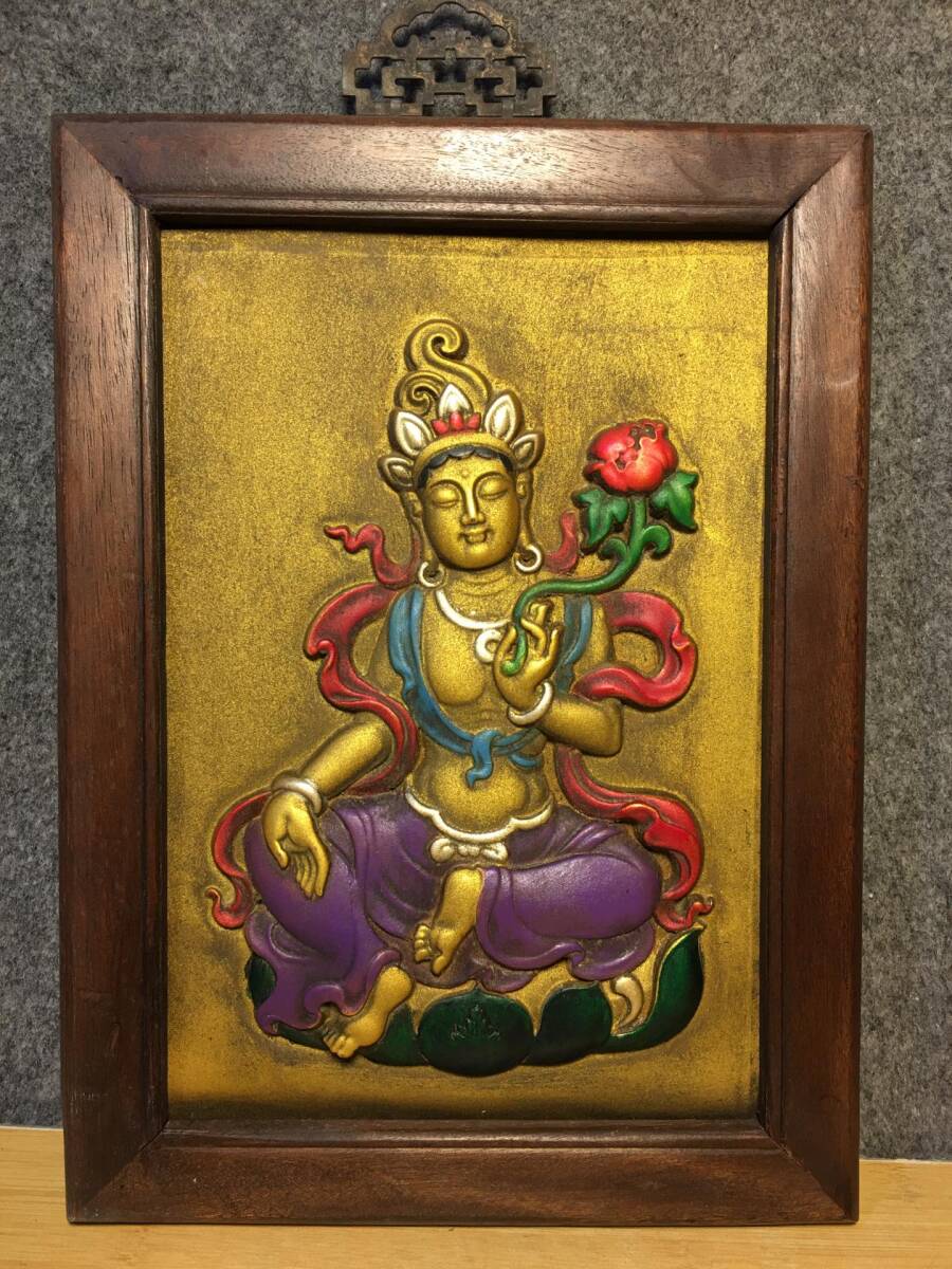 > 古木彫り 秘藏 清代 花梨木に紫銅タンカをはめ込む 書道具 文房具 時代物 中国古美術 細密彫 置物 賞物 唐物 木彫り 文玩 6.5