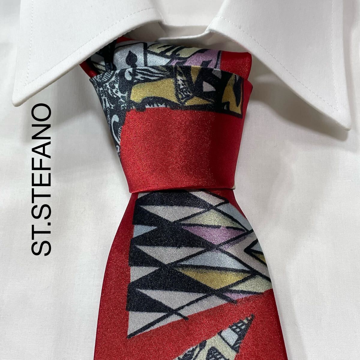 - ST.STEFANO 光沢 アート シルク ネクタイ レッド TG1996