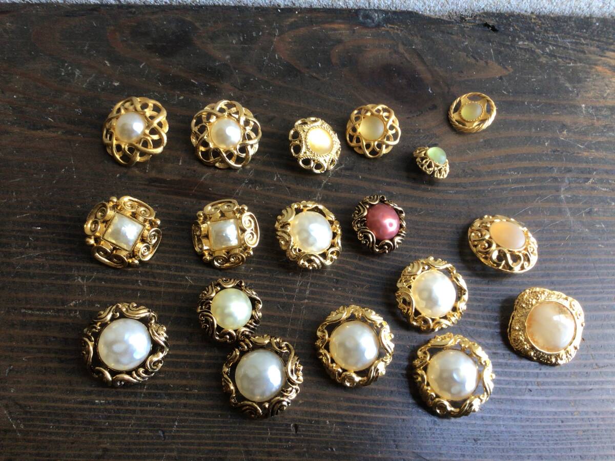 - 未使用 メタルボタン18個 まとめ売り パール調 ゴールド ツヤ消し アンティーク調