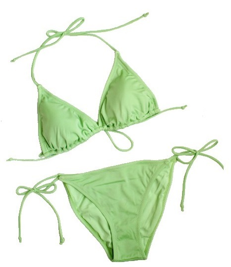 - 『送料無料』 ★三角ビキニ 水着★上下セット★無地★シンプル ひもタイプ水着★黄緑★Sサイズ/7号★