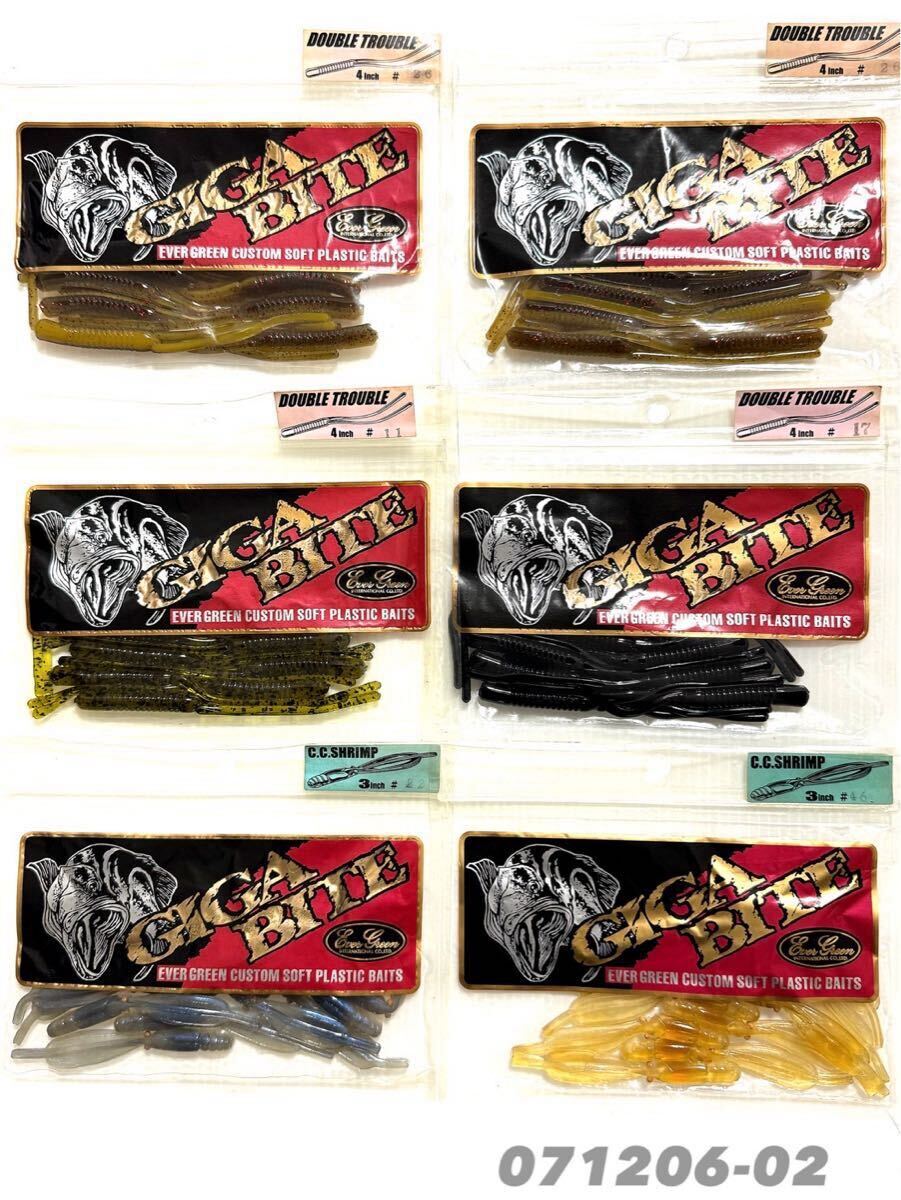 > 【新品未使用品・送料無料】エバーグリーン ギガベイト ダブルトラブル4inchとCCシュリンプ3inch合計6個セットでお買い得!
