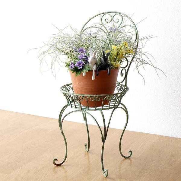- プランター おしゃれ アイアン チェアー型 椅子 イス フラワーラック 花台 アイアンのチェアープランター 送料無料(一部地域除く) mty5197