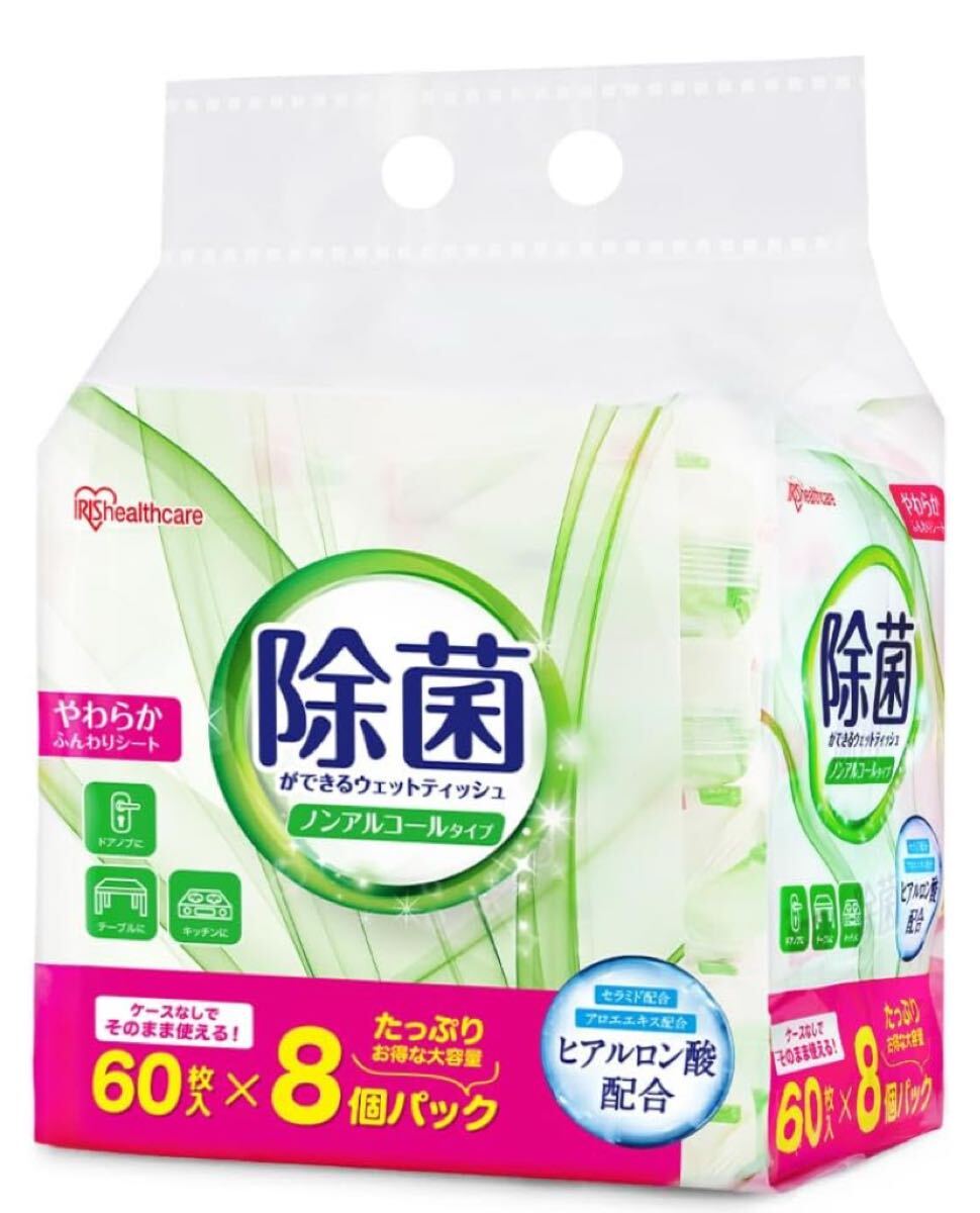 > アイリスオーヤマ(IRIS OHYAMA) ウェットティッシュ ノンアルコール 除菌 480枚(60枚入×8個) コンパクト 掃除 持ち歩き 携帯 大容量