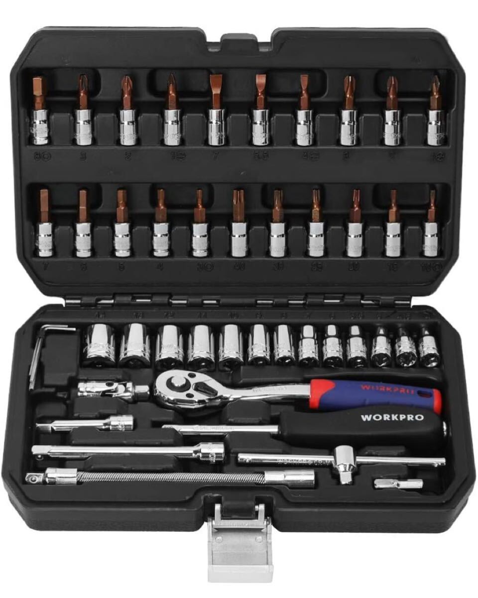 - WORKPRO ソケットレンチセット ラチェットレンチ オフセットタイプ 差込角6.35mm(1/4インチ) 46点組 自動車修理