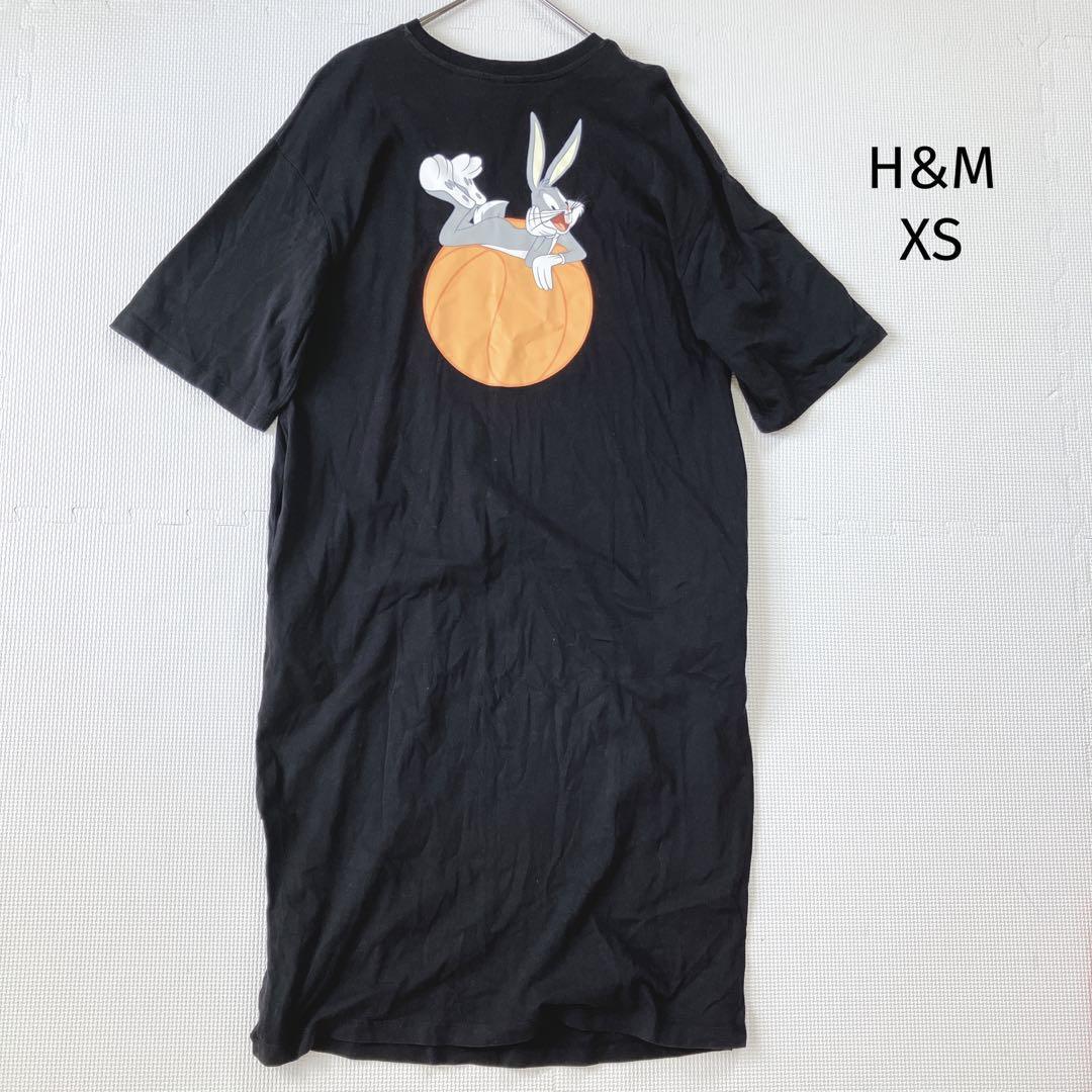 - H&M カットソーワンピース【XS】バッグスバニー 膝下丈 六分袖 ゆったり