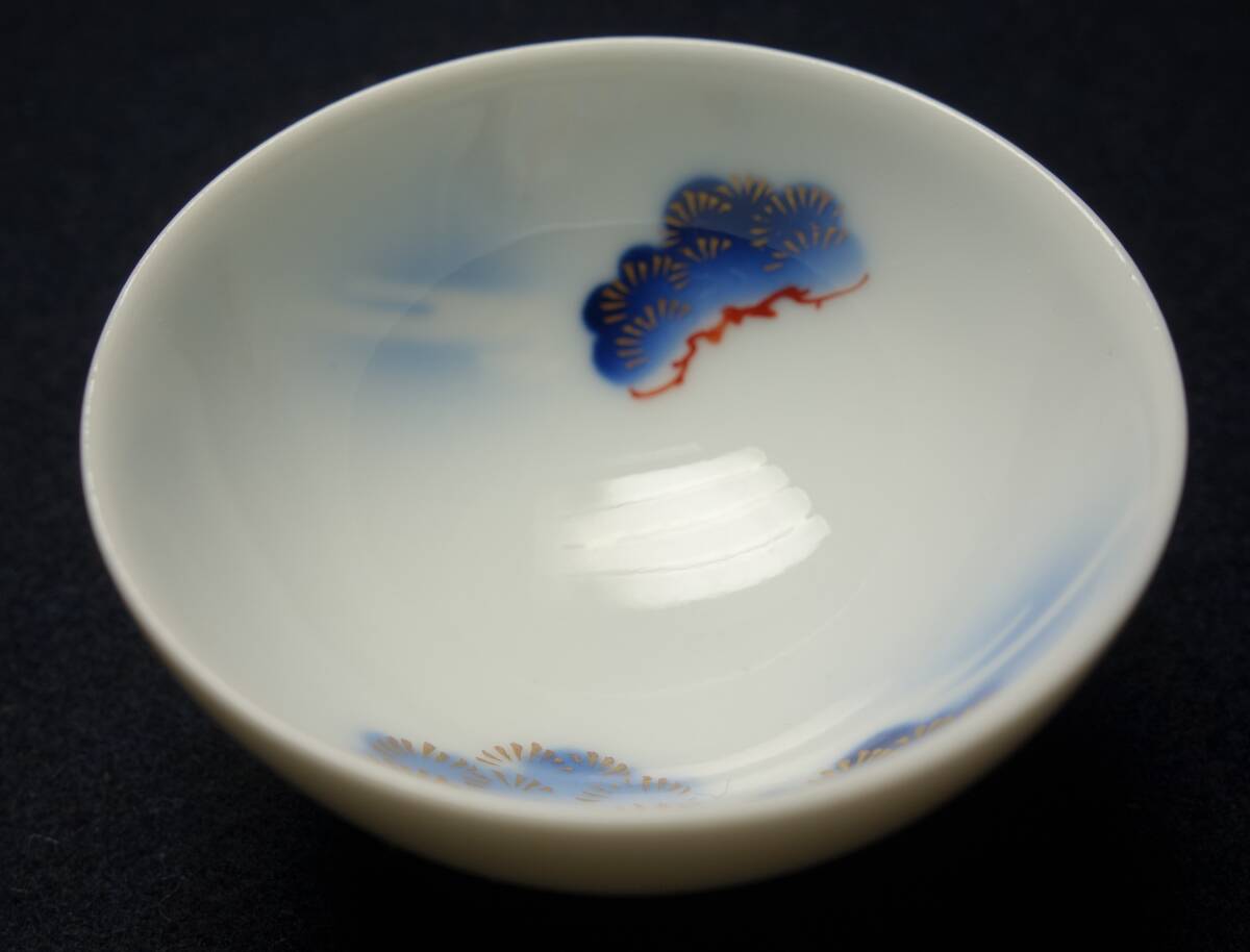 - 深川製磁 高級日本酒用酒器 美しい松風図+純金描き入り 最高峰 酒器 陶磁器研究