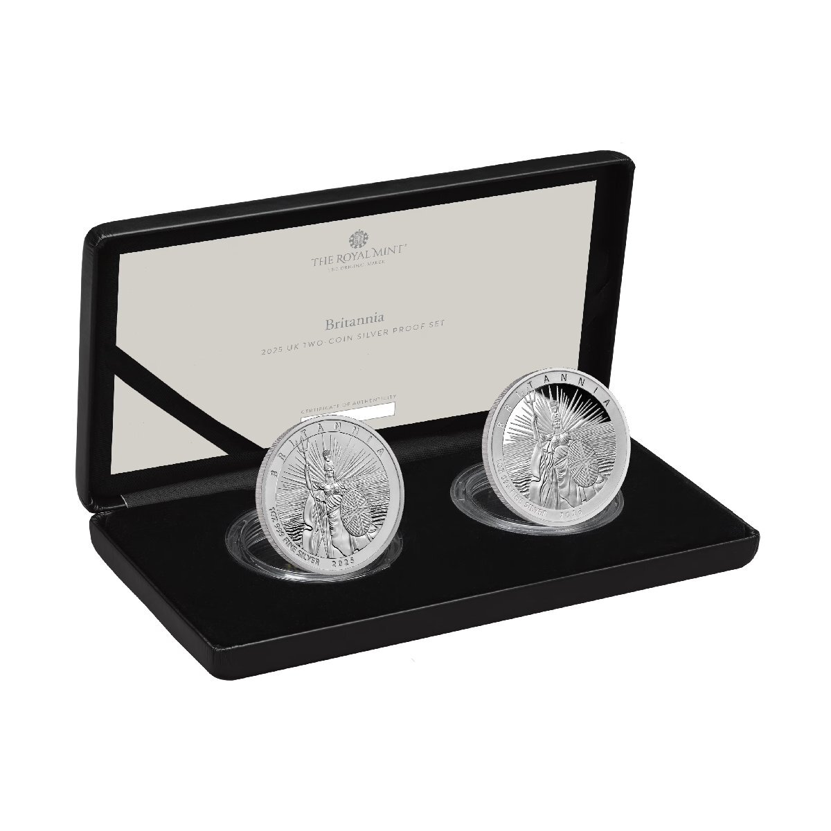 > [保証書・カプセル付き] 2025年 (新品) イギリス「ブリタニア」純銀 1オンス プルーフ/リバースプルーフ 銀貨【2枚セット】